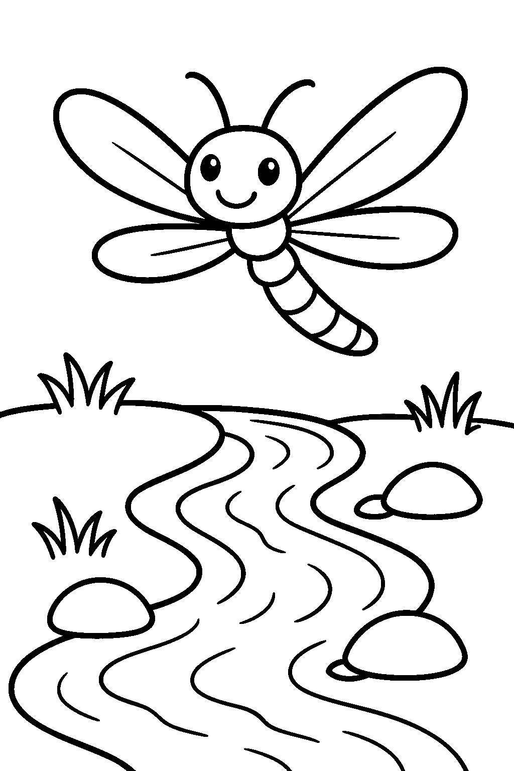 Free Dragonfly Dancing Over Babbling Brook Coloring Page
