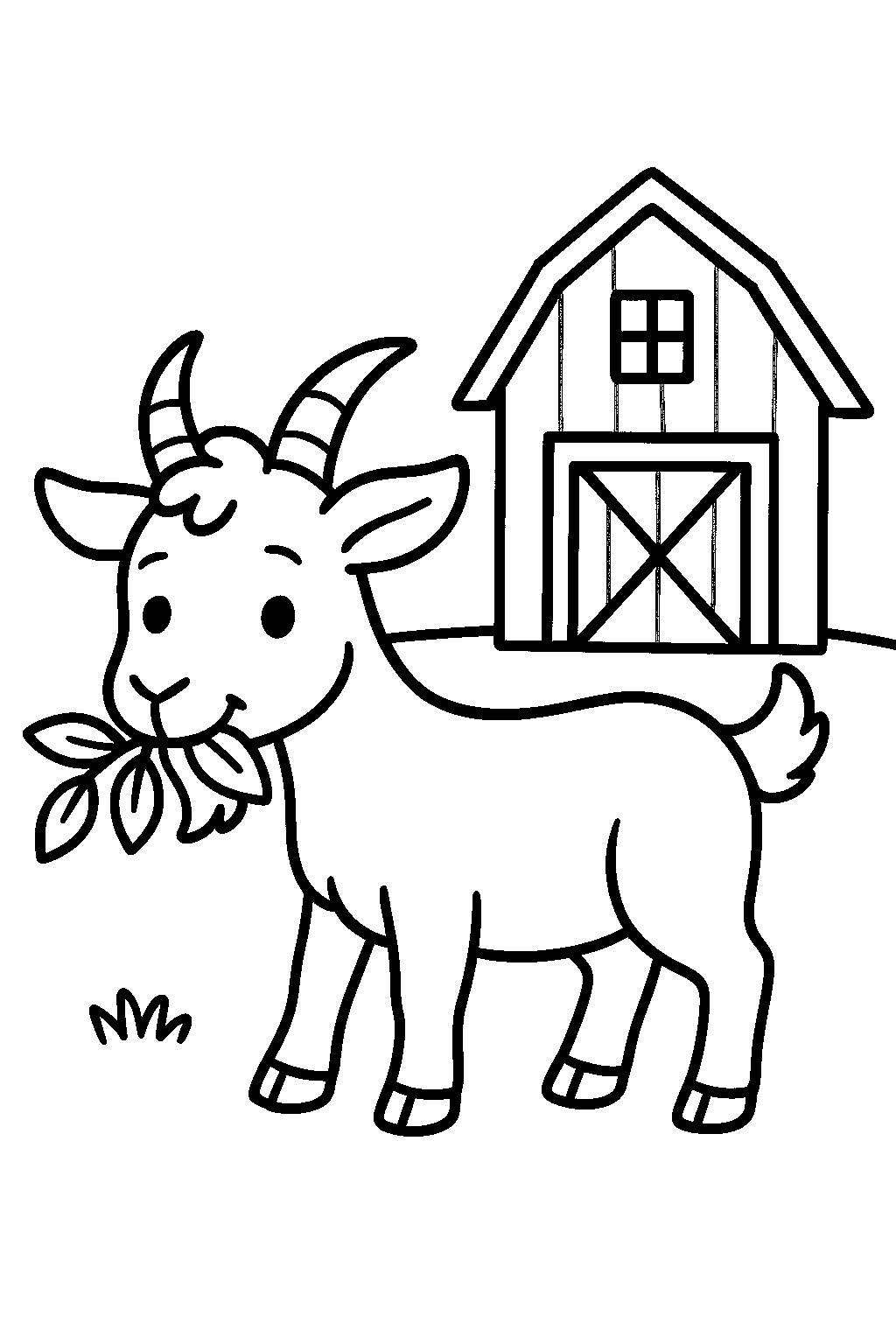 Free Goat Munching Leaves by Rustic Barn Coloring Page