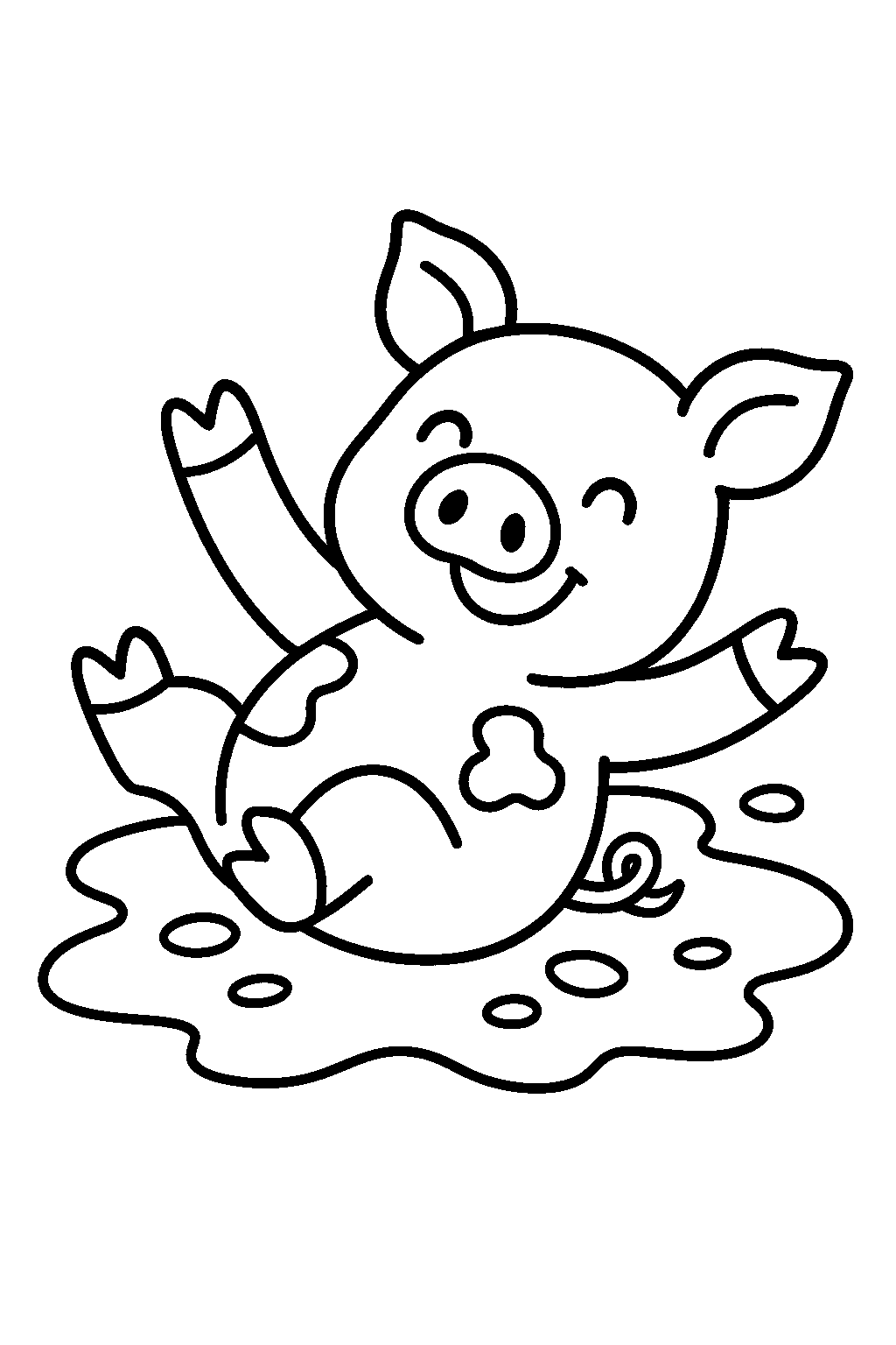 Free Playful Pig Splashing in Mud Coloring Page