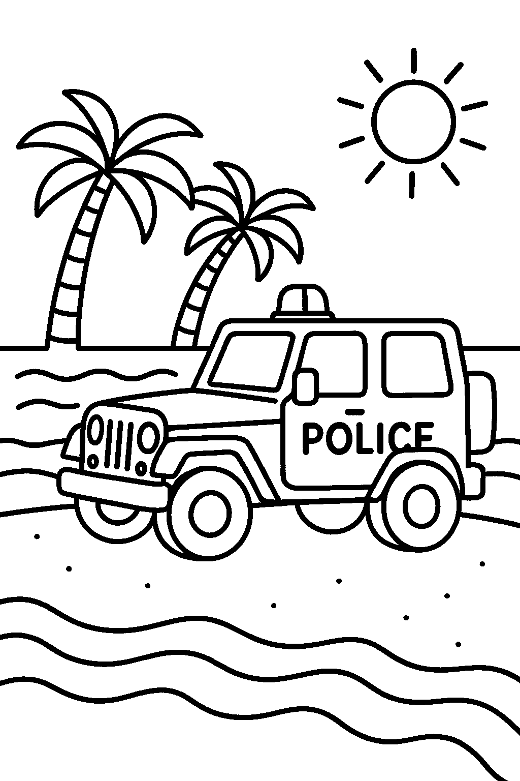 Free Police Jeep Parked on Sunny Beach Coloring Page