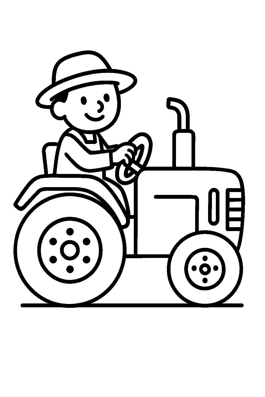 Free Smiling Farmer on a Red Tractor Coloring Page