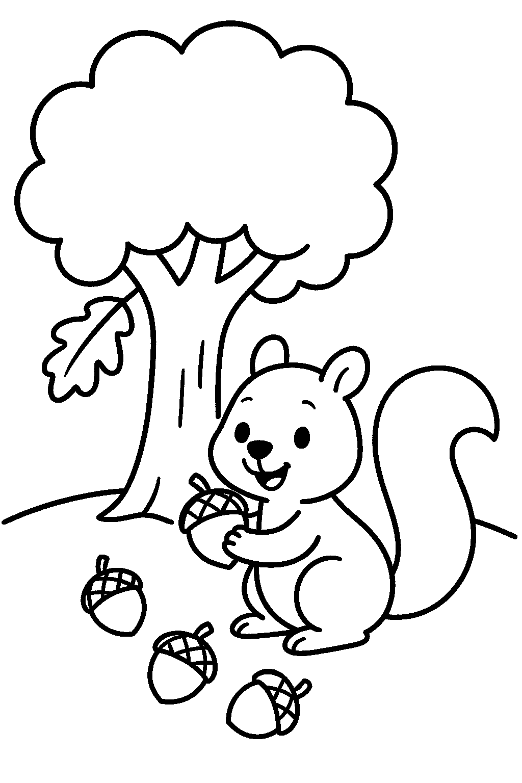 Free Squirrel Gathering Acorns Under Oak Coloring Page