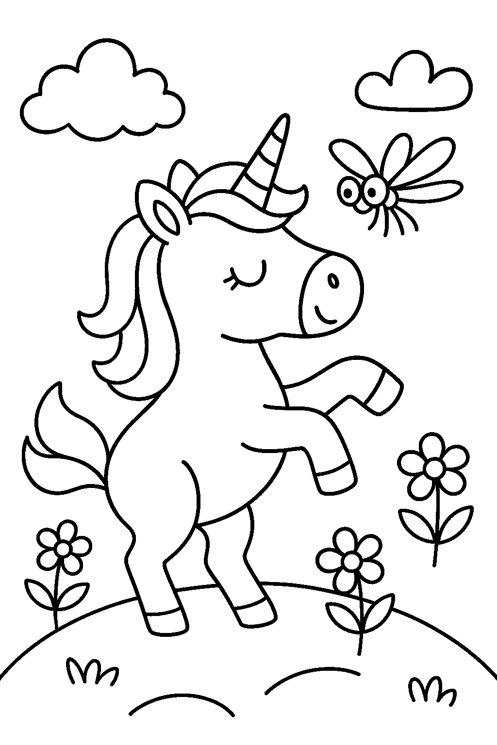 Introduce your little ones to a world of whimsy and magic with our Free Unicorn and Dragonfly in Dreamy Dance Coloring Page. This enchanting scene captures a playful moment between a graceful unicorn and a delicate dragonfly, dancing together in a dreamlike setting. The unicorn, with its shimmering mane and twinkling eyes, exudes a sense of joy and wonder as it leaps and twirls alongside its tiny winged friend. The dragonfly, with its iridescent wings, flits around the unicorn, adding an air of lightness and fun to this delightful encounter. This coloring page offers kids an opportunity to explore their creativity as they bring this magical friendship to life with vibrant colors. Encourage your child to imagine a world where unicorns and dragonflies dance among the stars, fostering both creativity and storytelling skills. Perfect for a rainy day activity or a quiet afternoon at home, this coloring page will surely captivate the imagination of children and unicorn enthusiasts alike. Don’t wait any longer to embark on this colorful adventure—download and print this unique coloring page today!